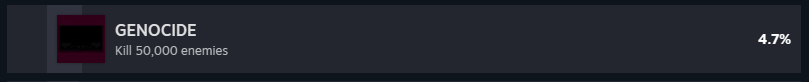 >>730652408>Achievement: Kill 60000000 enemies>there's like 100 NPCs in the game, half can't be killed