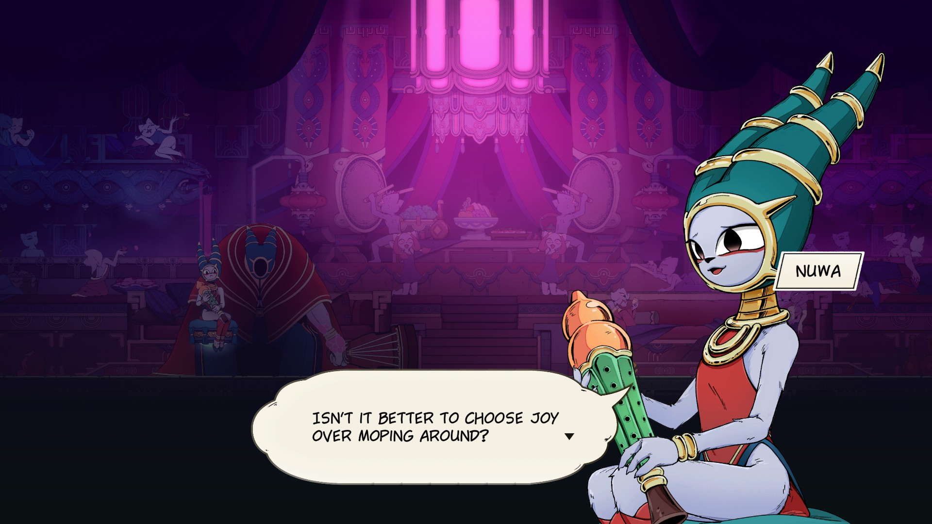 >>730655021It's 2D Sekiro but with an even more barebones combat system, literally just 3 parries and a dash/air dash, that's the whole moveset, you can't do anything else. Which results in very little freedom and skill expression, you do exactly what the game says, but I guess some people prefer this kind of laser focused experience, it's kind of like a rhythm game.