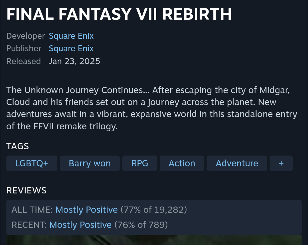 >>730663059Why is Barry shitposting about FF7R all day again?Oh right, Remake is being released Xbox and Switch 2 in ten days and he has to stop the game from selling a few million more copies. kekekekek