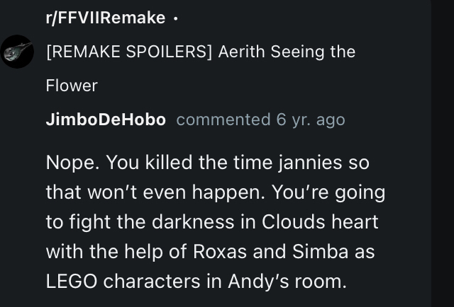 >>730663059Do you think FF7 happened in real life or something?