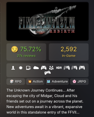 Why is ff7 remake criticized so much "seriously" while other games in the franchise can be allowed to he called masterpieces and criticism of them is just water under the bridgeWith ff7 remake you cant say "yeah this stuff was stupid haha i love this game" otherwise you are a fanboy consoomer, while in other games like ffix with its trash combat and 3rd to 4th disk being bad can be called masterpiece and people dont really criticize it seriouslyBasically, with ff7 remake you look at bad first and foremost and then slightlly the good, while other games are just all good except this nitpicks, but they are not bad since "it has soul".You can feel the special treatment the game has.