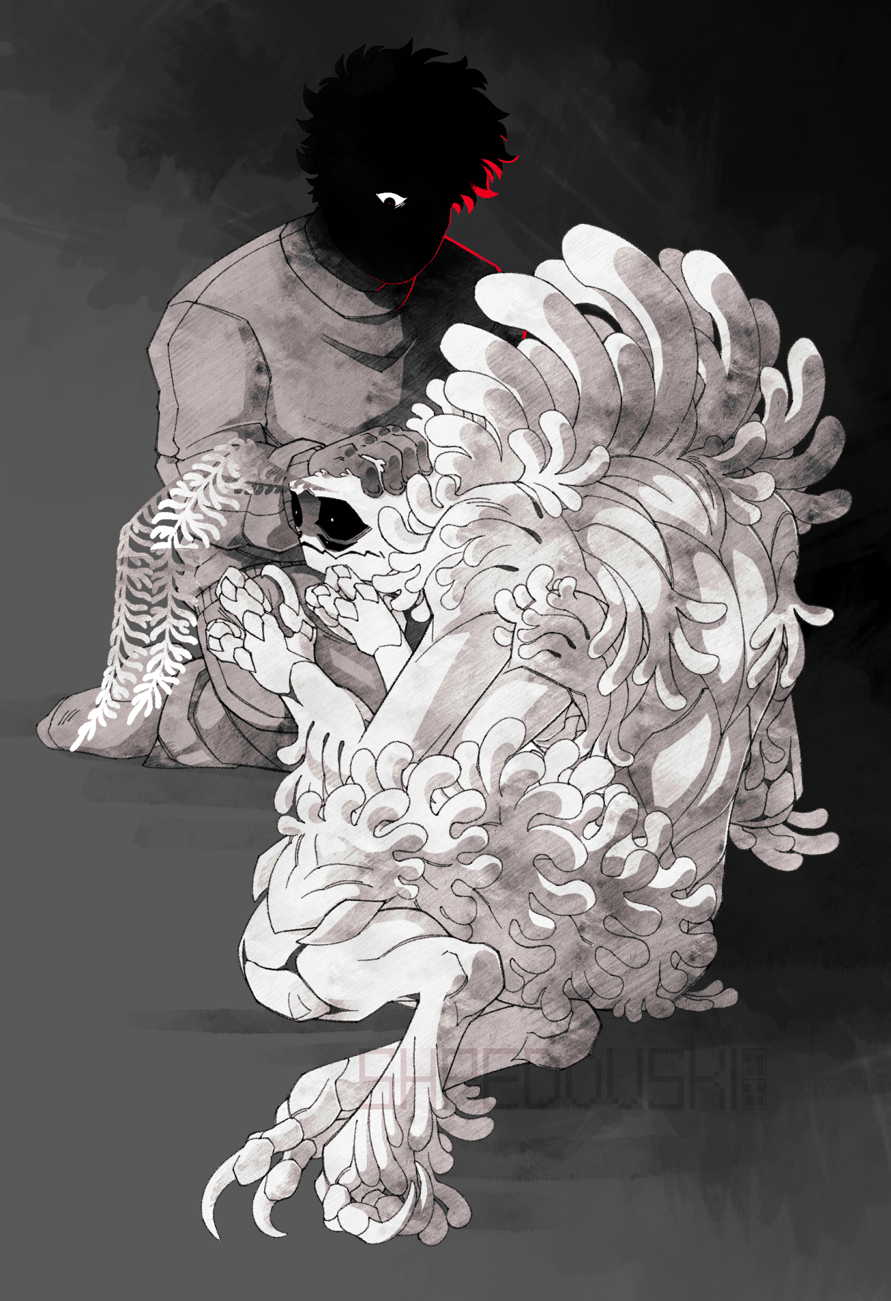 >>730680529Being an inverse of the tooth family (who physically mutate but already lost sanity) might be neat. Where she started mutated and the only reason the other heads are feral gremlins is just due to her upset about it.