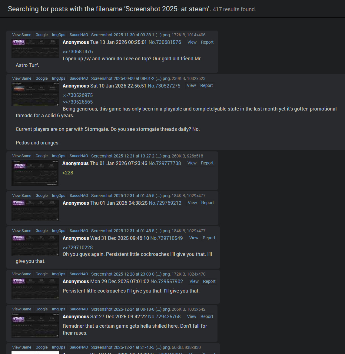 >could've done that in any of AI threads, twitter threads, pepe threads, e-celeb threads, not even talking about dozens of coomer threads>settled on 3 months old sub-1k reviews game thread instead