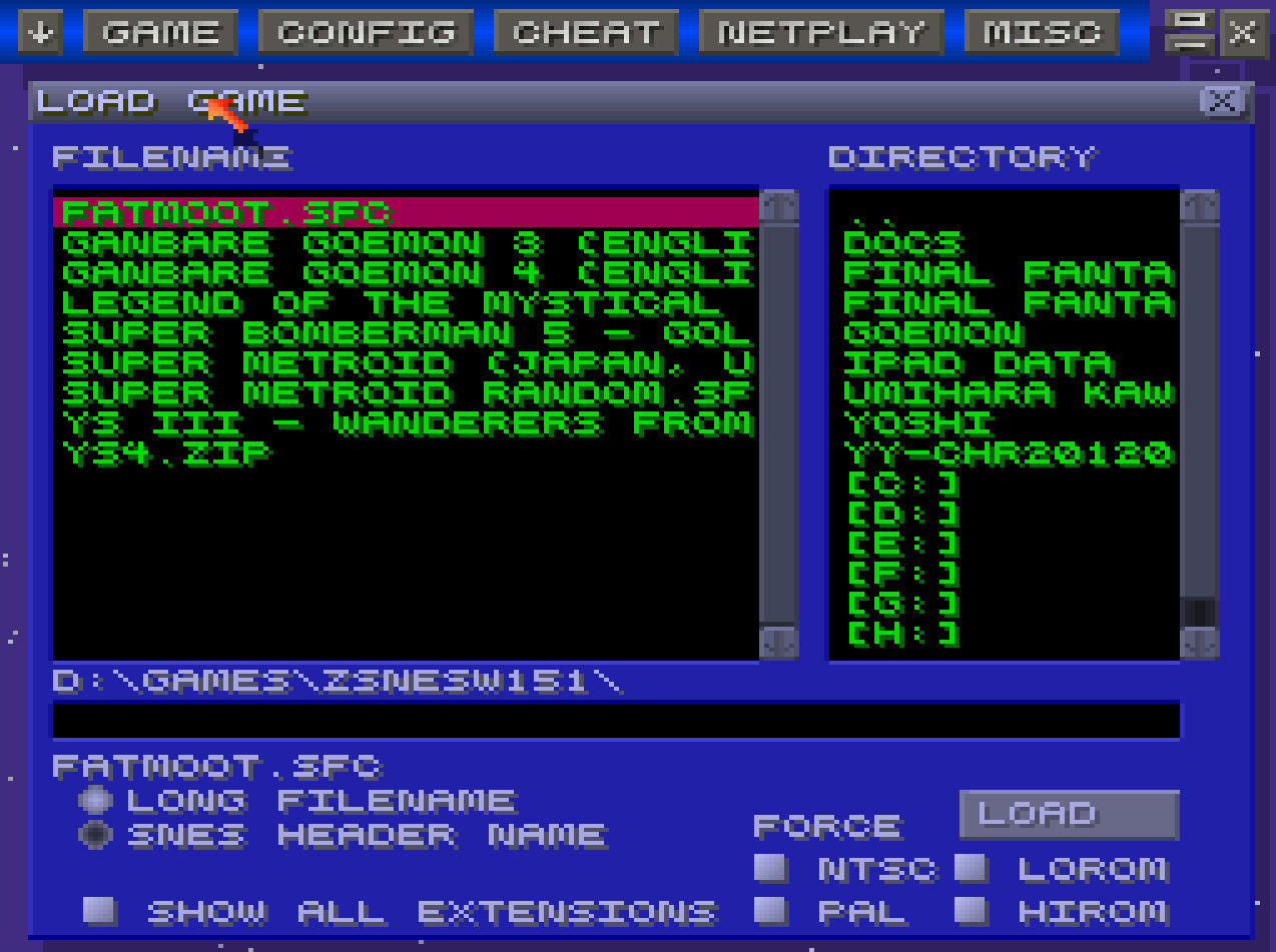 >>730701792ZSNES was a horrible emulator but it had a charming GUI (like the snow effect—I have it turned on in bsnes) and it was easy to keep track of hundreds of savestates.