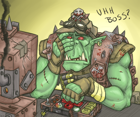 I don't know much about WarHammer but I think I read Orcs can basically will reality. So if they fire a gun and think that they have lots of ammo left, even if they don't, the gun will still fire as if he has endless ammo.Why wouldn't a faction team up with the Orcs and give them some sort of super serum that greatly boosts their intelligence so they can think about what they want to will in reality. A single smart Orc could literally rule the universe with a thought.