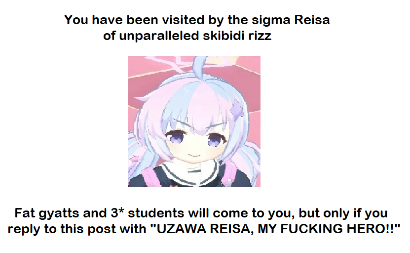 >>730722707UZAWA REISA, MY FUCKING HERO!!