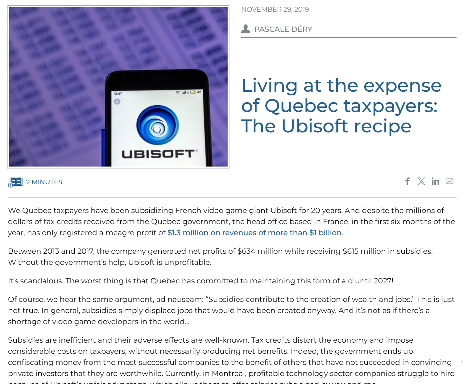 >>730727604>profitDumb measure, the goal of a company is to keep existing.>subsidiesProbably tax refunds so the taxpayer isn't paying anything.Even then the government earns taxes on income from each ubisoft employee.