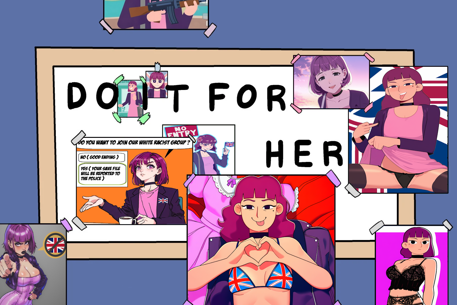 The existence of this "game" is genuinely the funniest thing that happened in 2026>bongland makes a shitty web "vn" aiming to lure in teenagers and "educate" them about why you should be a good boy>but the "villain" of the story who attempts to turn the MC into a chud... is a cute goth girl with a black choker and beauty mark>not just that, but the "chud" arguments are pretty reasonable, especially about immigrants taking homes from British war vets>if you pick the chud choices the game actually makes it sound good because you have a lot of friends, are in a supportive community, can join secret discord/telegram/whatever servers, get lots of likes online AND get a hot racist girlfriend>if you're a good boy you're a friendless loser with zero bitches who runs crying to his mommy because he saw something edgy online>4channers fall in love with the racist nazi girl and other people notice how nonsensical and dystopic the game really is considering it portrays even doing your own research or trying to debate the other side as bad, you're supposed to just obey and avoid any wrongthink>if all goes well this fucking thing will have its own Snoot gameKek