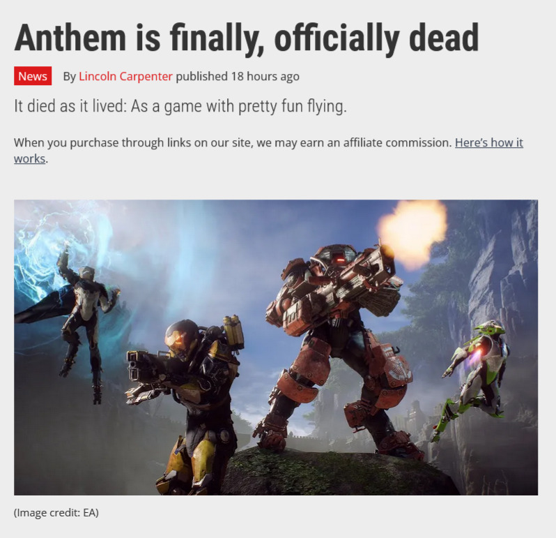 >Release date: Feb. 2019.I haven't really heard anything about Anthem since it's pre-launch gameplay video. Was it as good as that?