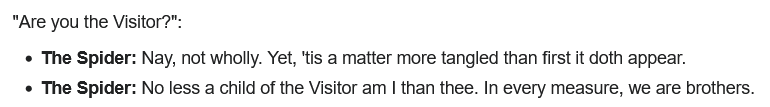 >>730754056Well Spider is from Malison, if anything he should be entirely disconnected from the Visitor