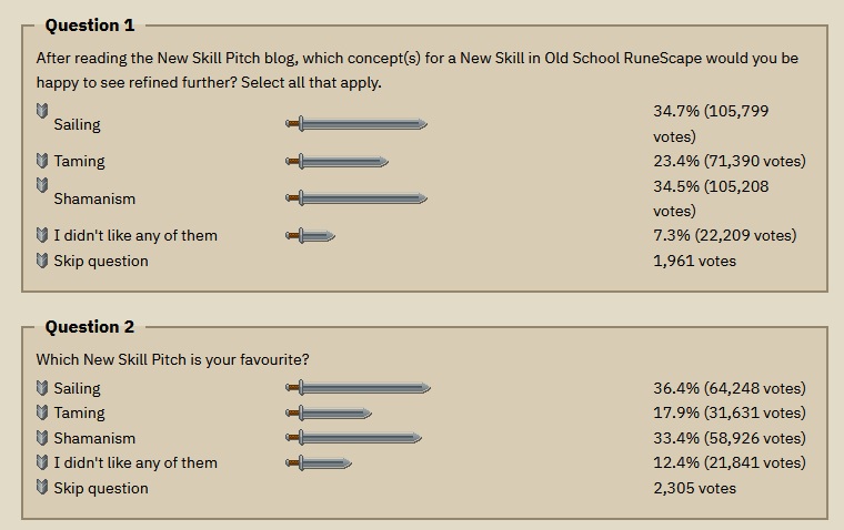 >SailingA whole new skill based off an old school meme>TamingSummoning 2.0>Shamanism Everything proposed could have been slapped into the crafting skill like RS3 did, also no more bank standing skills.