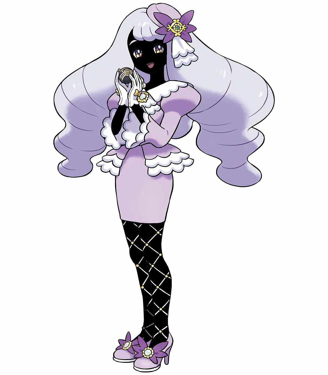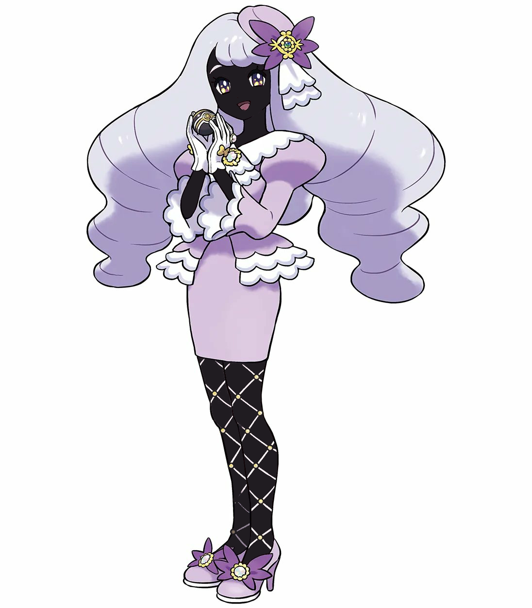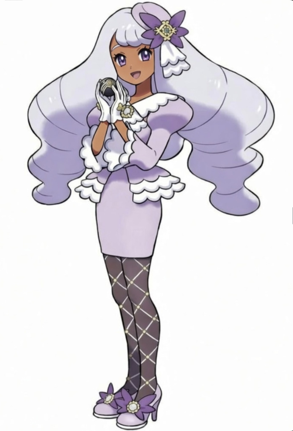 >>730778096I think so, it uses the yellow in a nice accent throughout the outfit, which helps sell the luxurious look, suggesting gold while still being unsaturated enough colours to not look too gaudy. The purple complements the yellow, there are lighter and darker purples used to help emphasis accessories, and her design is mostly made of soft rounded lines which gives her a cute, kind look, and having her hold the luxury ball which also features a gold stripe and is clearly related to wealth is a nice touch.Her skin seems to be brown mostly for readability, to be able to more easily distinguish between the light shades of her hair and dress and the rest of her body.I haven't played the game nor plan to, but I think it's a solid design.