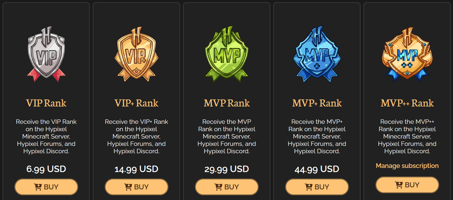 >>730783392>who knows, they might be worse.This game literally exists because Hypixel was so butthurt they wouldn't let him sell $150 p2w ranks on his minecraft server anymore that he started making a clone.