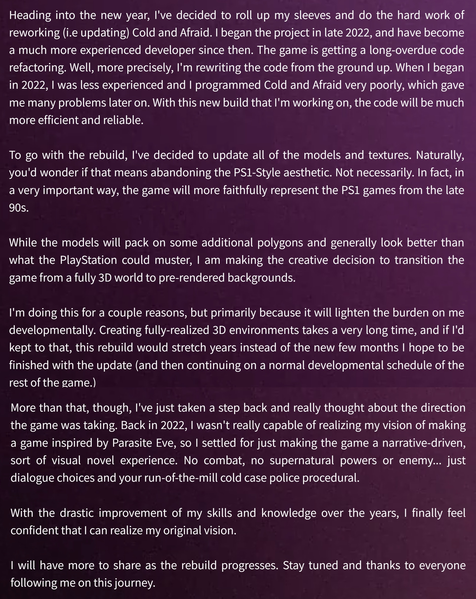 The PS1 aesthetic will never be abandoned.
