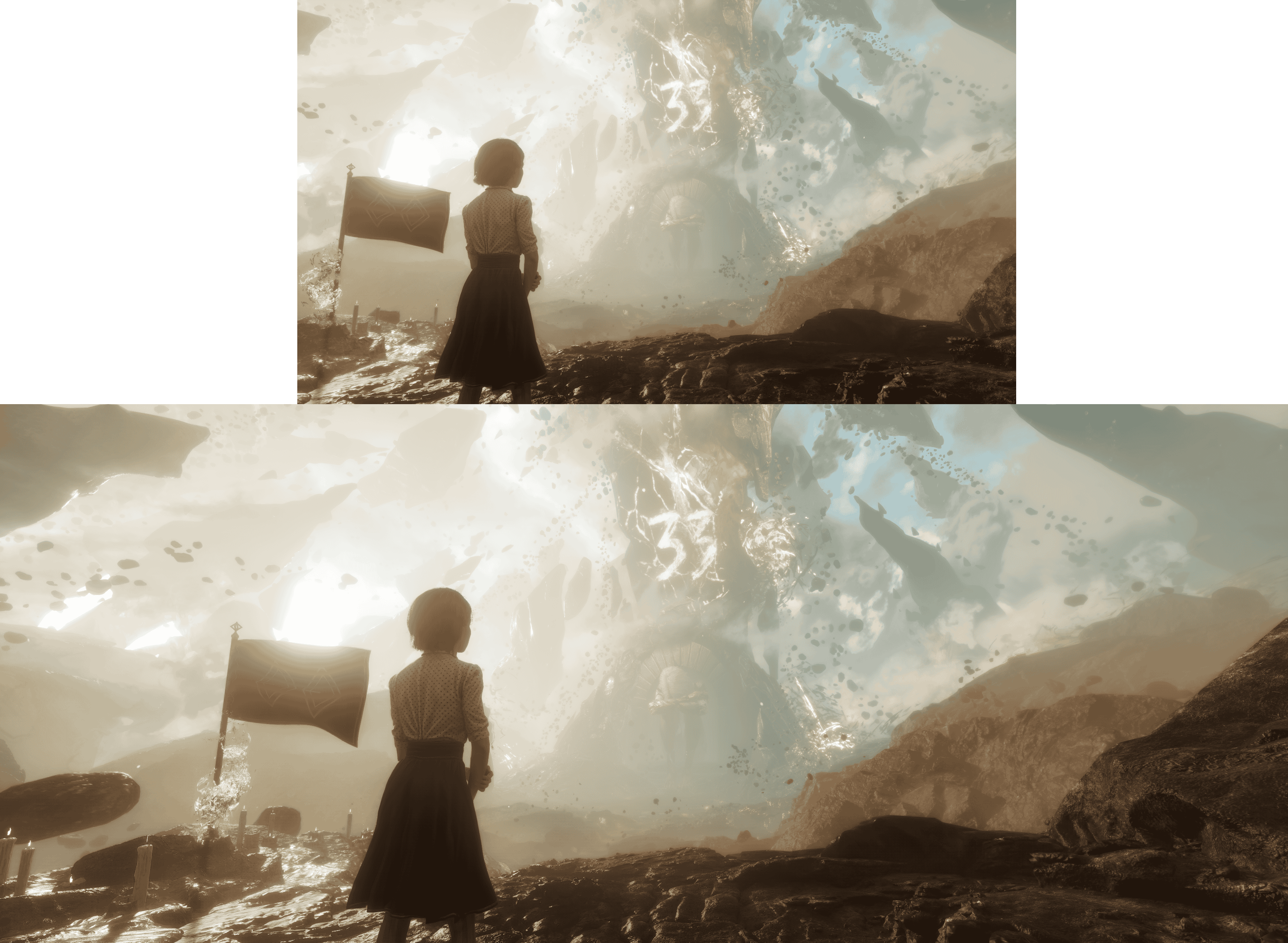 >>730796575Come on man, really try your hardest. We've got a 21:9 3840x1600 screen. And a 16:9 3840x2160 screen. These screens are exactly the same size horizontally, and the horizontal FOV is set identically on both monitors. The image you will see is >>730796052. On any game with a 3D engine.Where are you getting this "extension" from?