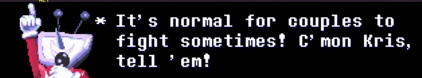 >>730824559>Hears Kris real voice after ages, gets really happy>Invites Kris and by proxy Susie to her house>Instead of spending time with Susie she decides to invite Kris to her room alone>The whole weird romatic vibes before you make your presenceI'm safe here bruh>But the playerNoelle didn't had the thorn ring before the couch scene so she wasn't influenced by it, she did it herselfNOW Kris being the one actively preventing it because most likely it will end in a tragedy? That's another topic, plus some people like tragedyslop