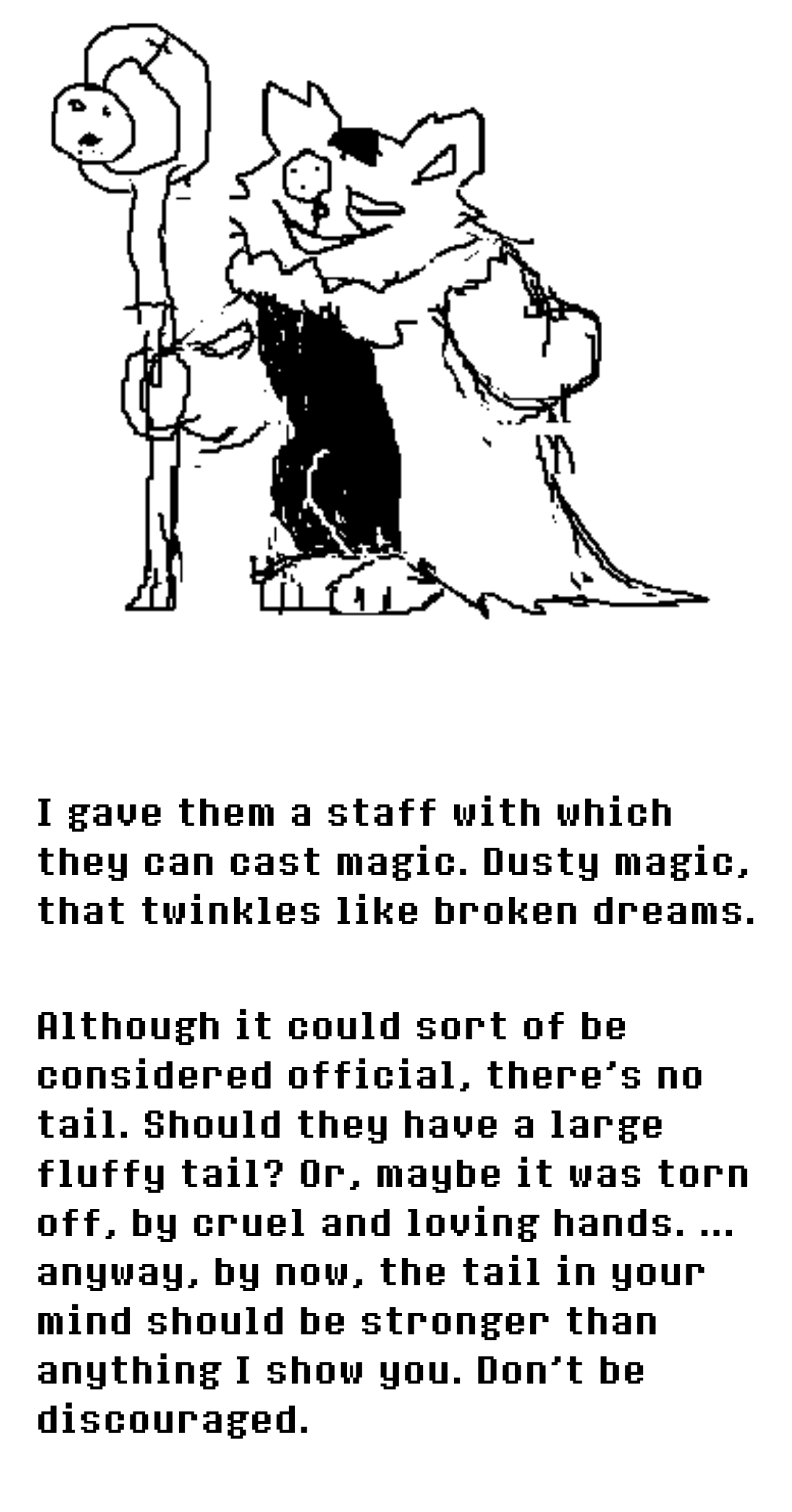 >>730804853>Toby could simply have renamed Ramb into Mike instead.I think Mike being a character that only does things offscreen is actually really good. It's a genuinely funny gag. The main problem is just the Mike room. He should have been kept as an off-screen guy that only shows his presence via his actions. >>730805098Gaster isn't a player, he's an author. He's supposed to be a fanfic writer and Deltarune is his Undertale fanfic.