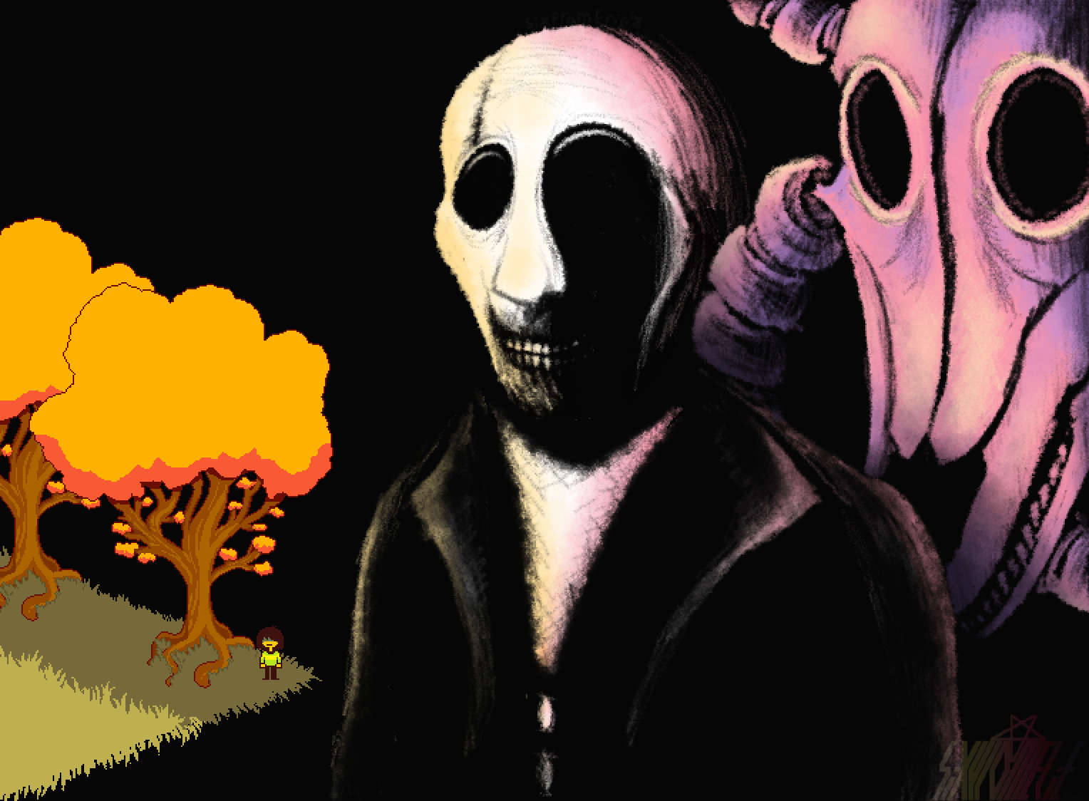 >>730807401The "Gaster noises" are the background noise of ENTRY #17 (room_gaster). Notably, it is just the background noise, without Gaster's actual talk sounds speaking over it as in ENTRY #17.https://www.youtube.com/watch?v=fpneLl7ohUsThis "music" is labelled "mus_smile" in Undertale (and the actual sound is the same sound clip used for Muffet's laugh, extremely slowed and distorted).FRIEND is at least tangentially related to Gaster, based on it being initially identified with "DEVICE_FRIEND" and "IMAGE_FRIEND," following the same naming scheme as objects found only in the intro and menus of the game. Its sprites in Chapter 3 are even outright redacted with blanks/underscores in their filename rather than a proper name.FRIEND could be a direct agent of Gaster in some way, or it could be another creature from "the depths." Being identified as "THE TAIL OF HELL" could support either interpretation, given Gaster's own 666 theming.FRIEND is associated with (creepy) smiles and laughter, something again at least somewhat associated with Gaster ("mus_smile," mysteryman's permanent smile, the Memoryheads' smile) and something more generally associated with villainous characters in Undertale (Flowey, Chara). It may also be worth noting that "to laugh" and "to smile" can be synonymous in Japanese (笑う, "warau," the reason Japanese people type "wwwww" as their version of "LOL"), something that Toby has used in at least one significant place ("How long did it take her to smile?")All of that is to say Gaster is 100% inescapably a major part of Deltarune already, he has been from the very start (pic related archived from Deltarune's website in December 2015), and if it turns out that FRIEND = ERAM and is the one who's been making the schizos (as strongly evidenced by its appearance with Spamton) it wouldn't diminish Gaster's importance whatsoever.