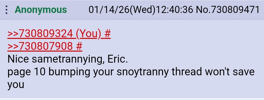 >>730830364>>730830360Nice sametrannying, Eric