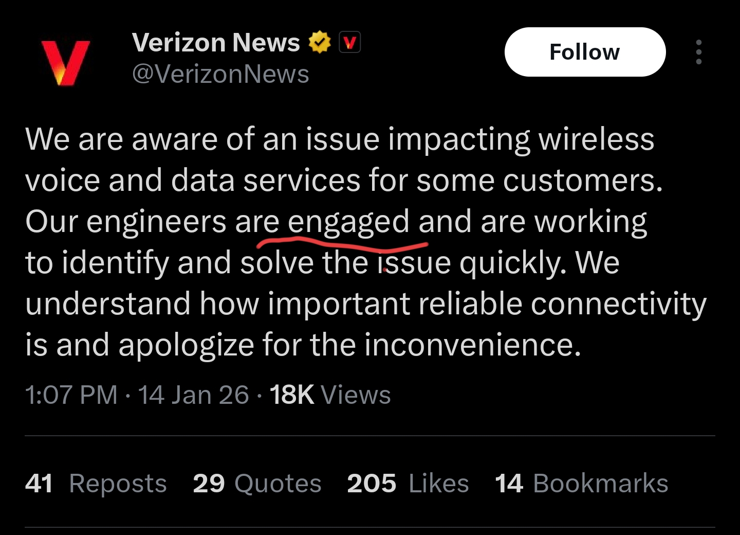 >>730811726Verizon is one of the worst companies I have ever had the displeasure of doing business with. bad prices, bad customer service, bad coverage, bad phones. not a single redeeming quality