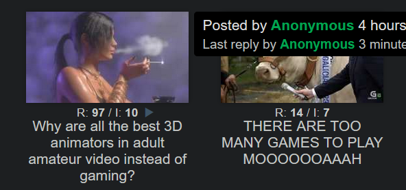>>730822982Considering how the thread is going, I'd take it over yet another twitter screencap complaining about the state of things tangentially vidya related.