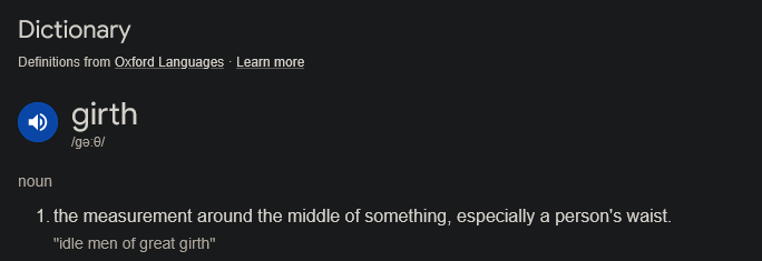 >>730826197>uses a word wrong and awkwardly (you wouldn't say someone has Girth in that context but rather would use it as a measurement)>realize what a stupid faggot you are and end the discussion entirely after using fucking Google to confirm your own retardation Holy retard you're definitely American