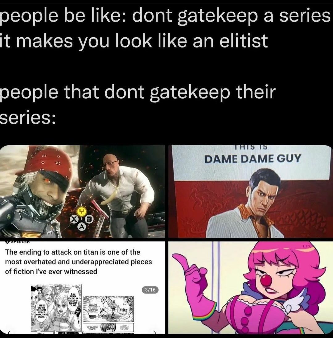 >>730819454Attack on Titan specifically here has been completely run through the pop culture pipeline even worse than the others. It's a fucking shame too.