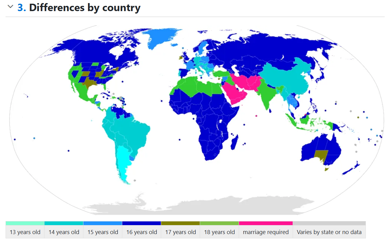 >>730827328I heard Colombia raised the marriage age to 17.>>730838241They do, but it varies. Conditions like "Person who is 15 with a partner who's 18 or younger" are very common; German adults can legally fuck someone as young as 14 as long as 1. They aren’t in a position of power (Schutzbefohlene), 2. If the "lack of capacity for sexual self-determination" is not being exploited, and 3. If the parents are A-OK with the relationship. Japan’s old AoC of 13 was a meme and only enforced in an island of one prefecture, but in reality was 16 IN PLACE everywhere else before they legally changed it to that age nationwide a few years ago. I believe there also needs to be a parental “proof of love”, but that’s about it.Only places like France fit your definition where a federal level of AoC doesn't exist and as long as you don't force, coerce or pay for sex, you can fuck who ever you want.