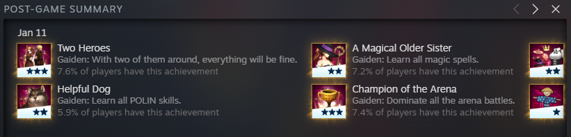 You are rewarded for grinding, when each chapter has 4 silver chest and 1 gold chest for gear and you get a weapon for having every other weapon. New gear give you Karon abilities, and while you're grinding the masteries out, you'll get Force to dump into your Grow tree to get magic, which scales better than physical if you are exploiting weaknesses.It's also a stat check game, since at this point you can unlock some things likeCh. 4 Nexagram = Energy Drain (healing during spell cast)Ch. 5 Shinobi's Attire = Cicada Shell (one nulled hit per map)Ch. 7 Dragon God's Shield = Full Burst (all MP on one spell)Ch. 8 Diabolos = Demon RageCh. 8 Armor of Darkness = Darknessthat make it easy. Stack the last 3 for the buff Possession spells like Berserk (physical attack), Sylpheed (attack/move speed), Turtle Shell (defense) and they'll last longer while upping your stats significantly.