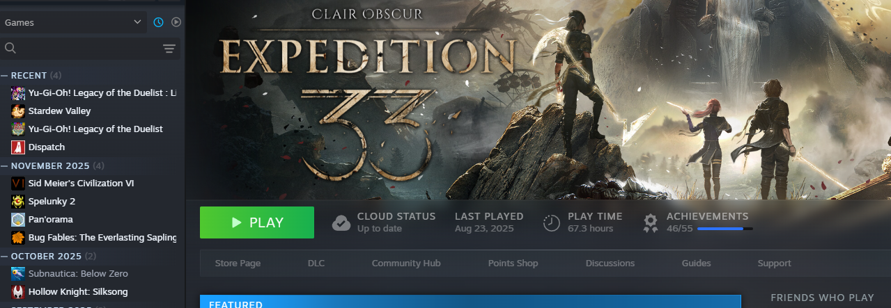 >>730833965>Post 2017Yeah>Hollow Knight Silksong>Zelda: Tears of the Kingdom>Pizza Tower>Octopath Traveler 2>Baldur's Gay 3>Elden Ring>Hi-Fi Rusht. E33 fan