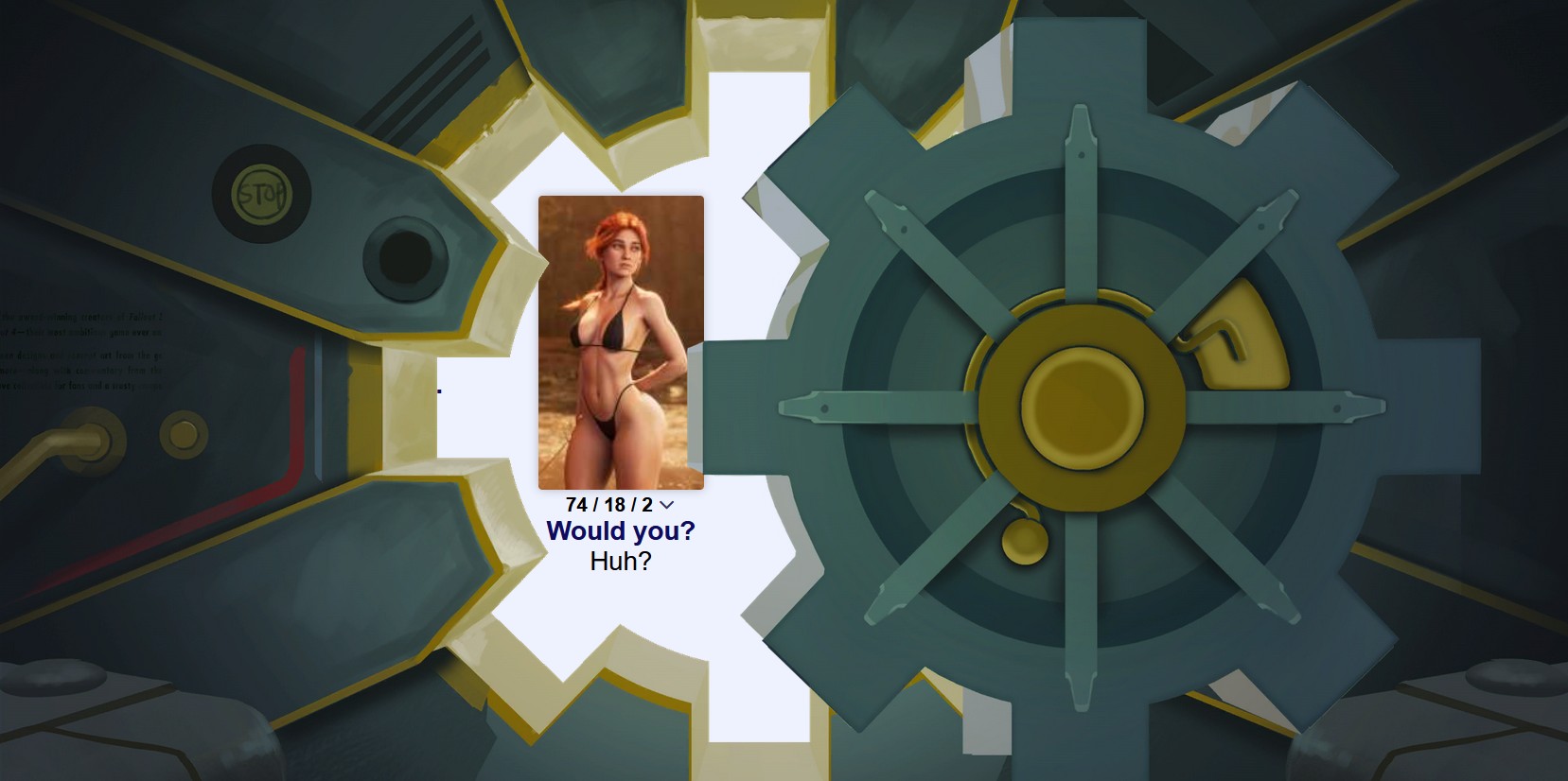 >in the dead of night, trying to sleep>suddenly hear an absolutely deafening fart echoing through the halls>this is immediately followed by a guy moaning really loudly and screaming YAMETE in a high pitched voice>which is, in turn, followed by two gunshotssuch is life in the /v/ault