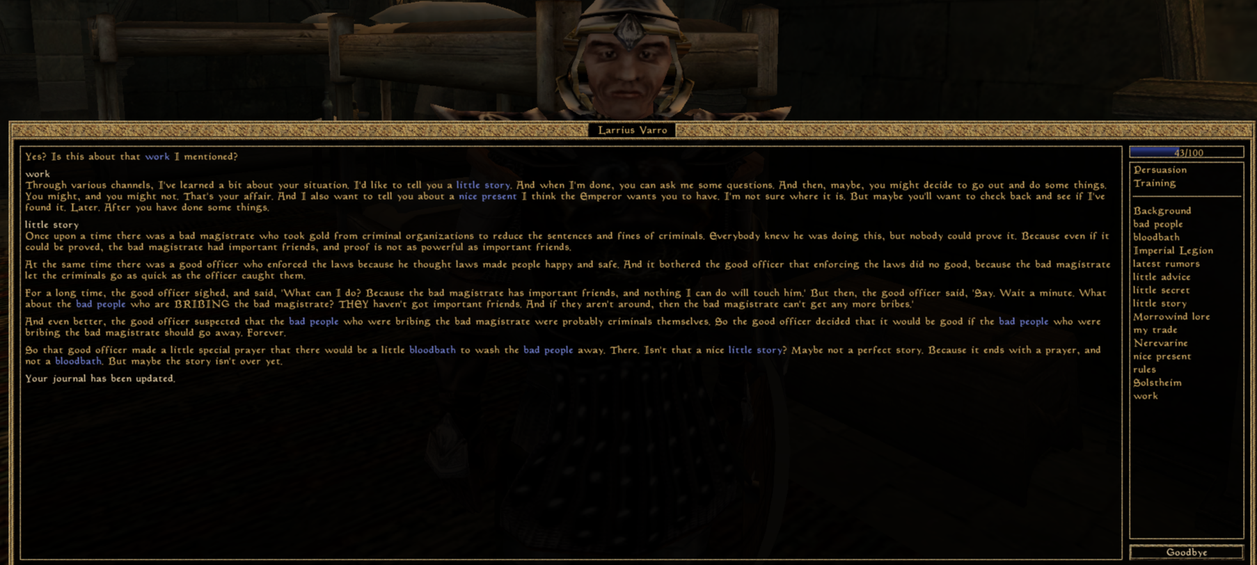 >>730840538Please don't post xir. Xe already had a half hour long melty on stream the other day cuz of this. His Daggerfall vids are still really helpful for getting into the game