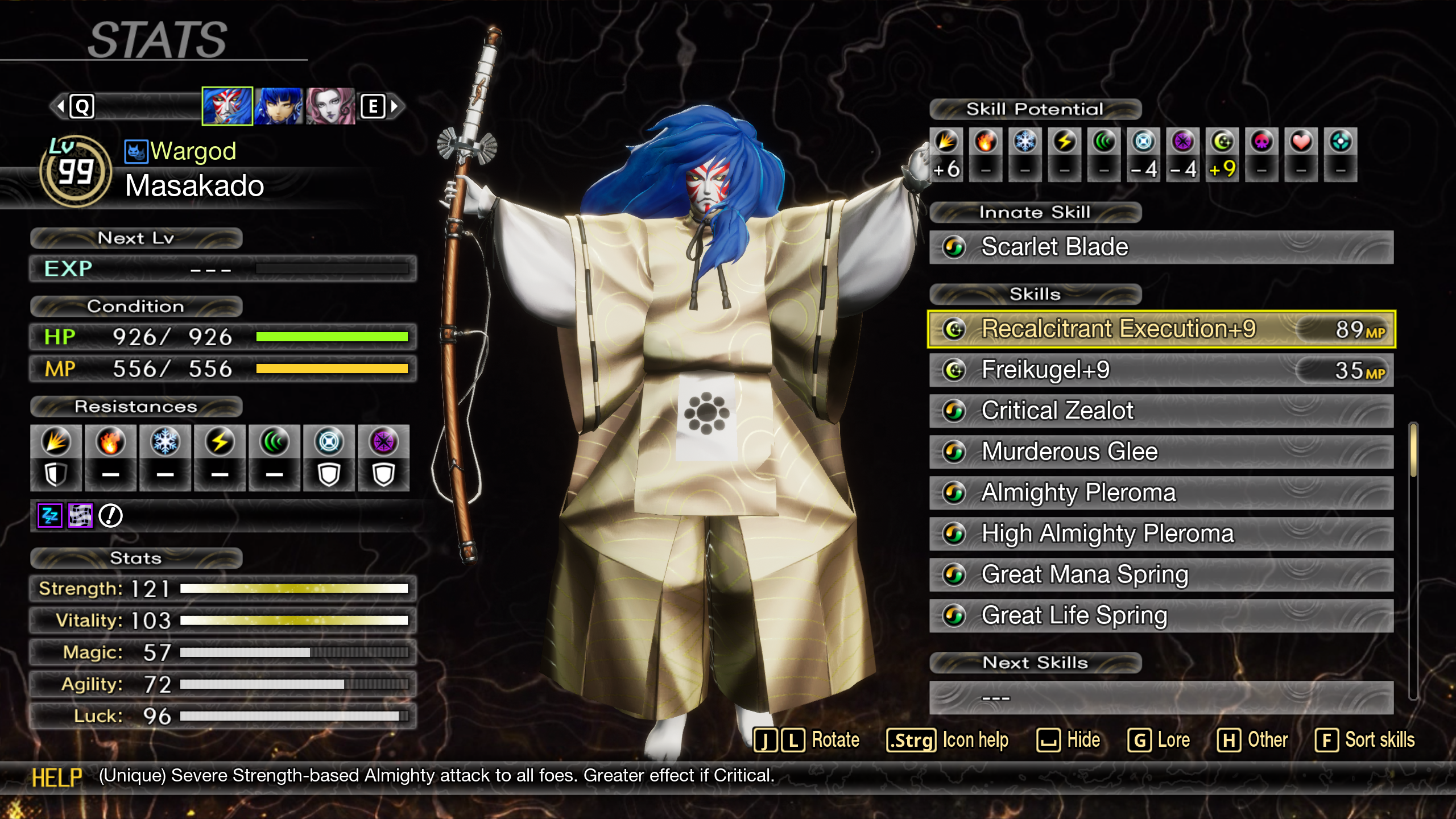 >>730888704>Superbosses should not be puzzles that can only be solved a set way, they should be able to be tackled in whatever manner you've chosen to build your characters and whatever strategies you've built to play the game.Superbosses first of all are always going to have some degree of imposition on your builds because they're meant to be extremely strong, so expecting to beat them with ANY strategy you've used all game is too permissive. There should be some common sense requirements like having high/pleroma on all your offensive demons, which in turn should either have strong unique skills or some way to enable figment slash. Secondly just by the amount of strategies I've seen and personally performed in both EO and SMT as a whole I can say that even at their most puzzly, you have a myriad of solutions to any fight. It's not do THIS or die, it's usually do SOMETHING or die, and there's room for player expression in what that something is. Take Megido Ark in your example. I too had no interest in respeccing to the meme dodge build to deal with it so I didn't. My option instead was to use Elysian Harvest in concert with the usual buffs/debuffs raise my hp past the threshold where he'd kill me. Having enduring soul on all your demons is also common sense for these bosses as far as I'm concerned, so even his opening Ark will get eaten by an enduring soul or whittled goat, the latter which you naturally should have on hand. That's not even the only way I've considered to deal with it. Another option is to have a sturdy demon with a taunt skill defend on the turn you expect ark. Yet another option is to use kannabi veil, not that I would ever spare even a scrap of offense for that on my MC. And then of course you could probably just kill him with Strategize cheese before he gets to do anything.