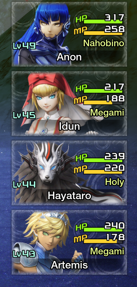 >>730842941Don't forget to buy those elemental stones from the shop, they're super useful ESPECIALLY for mitama (those yin-yang looking demons).