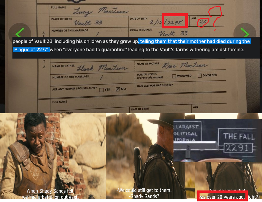 >>730863267It's like the prop guys and writers talked about the retcon they were going to do, but only met for a minute to discuss it.Leading to these bizarre inconsistencies.>pisses off lore purists the mostWell, to me it's pretty clear they originally wanted to do "NCR got nooked exactly 200 years after the Great War".They only changed their minds for s2, but didn't communicate the retcons well enough to everyone else.Leading to a Lucy that's over 30 years old.
