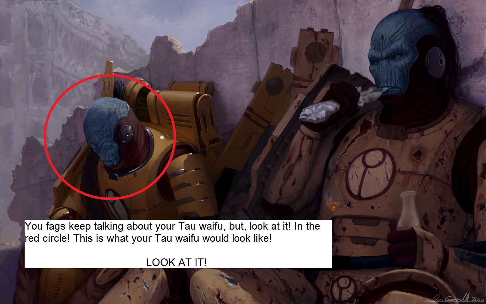 >>730850239I am all for tau hate but please don't use fucking fanart to prove your point because it have same value as coomer cow tits tau arts. 0.Just find some actuall tau art.