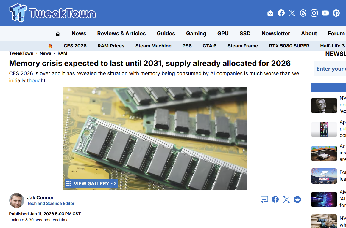 >>730856827People not being able to upgrade because of RAM prices means they won't be buying other PC parts, though. So basically, everyone selling PC parts will go under and there's no guarantee PC building will be possible after 5 years of this.