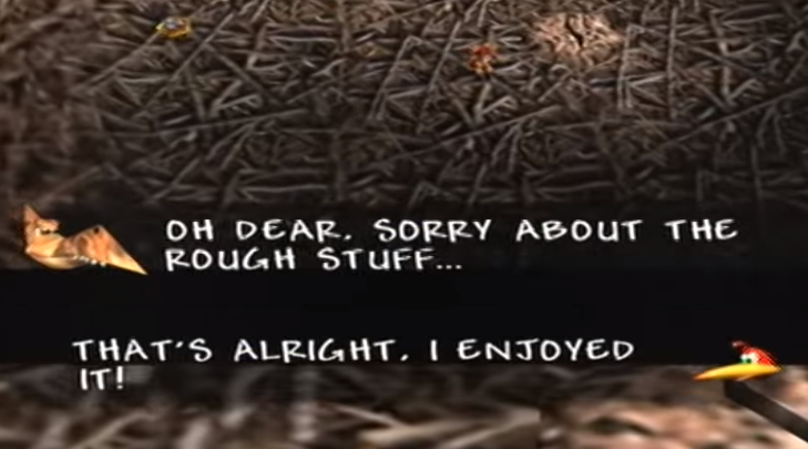 >>730861567Are there any omorashi scenes involving kazooie?