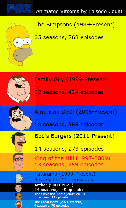 >>730863612Missing a bunch of duds.>Allen Gregory>Napoleon Dynamite>Bordertown>Sit Down, Shut Up>Son of Zorn>Golan the Insatiable>High School USA>Bless the Harts>Duncanville>The Great North>Housebroken>Universal Basic GuysAnd technically The Critic since it was canceled after two seasons (The Great North has five), but that was pure gold.