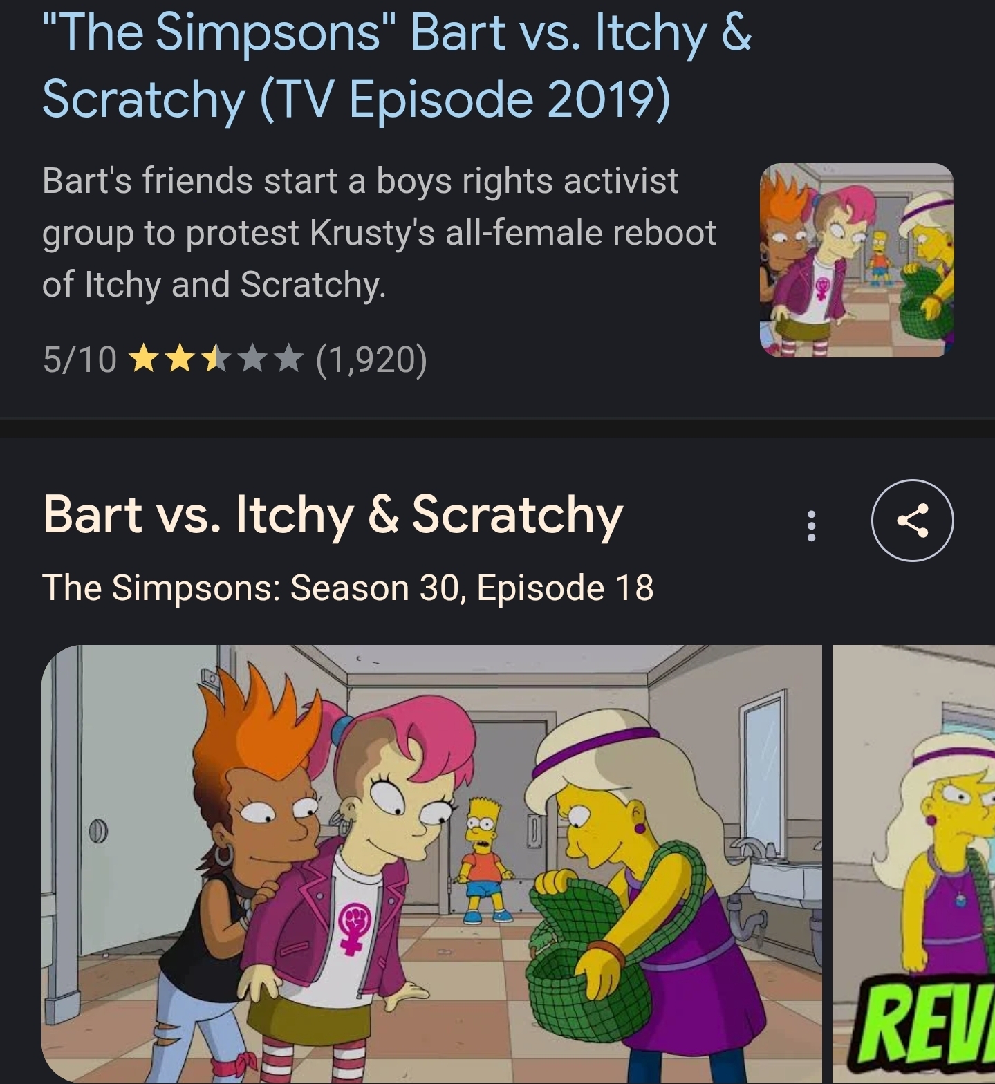 >>730863398bart becomes a radical feminist and tries to replace itchy and scratchy with female versions of the characters