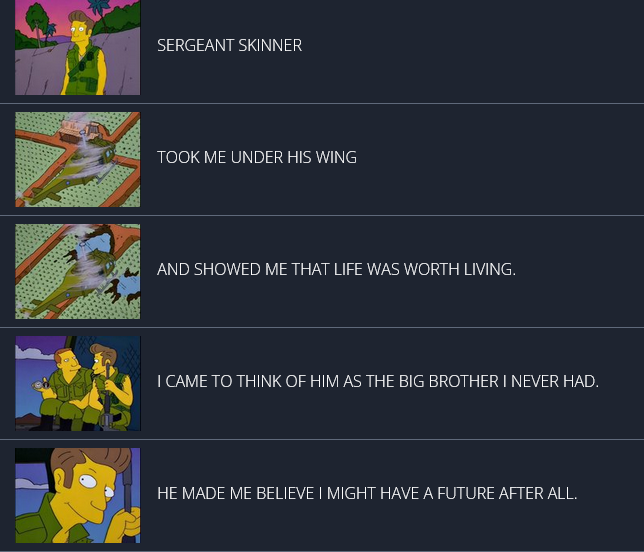 >>730862851Which ever episode revealed that Skinner isn't actually Skinner. Dunno why that pissed me off so much as a kid.