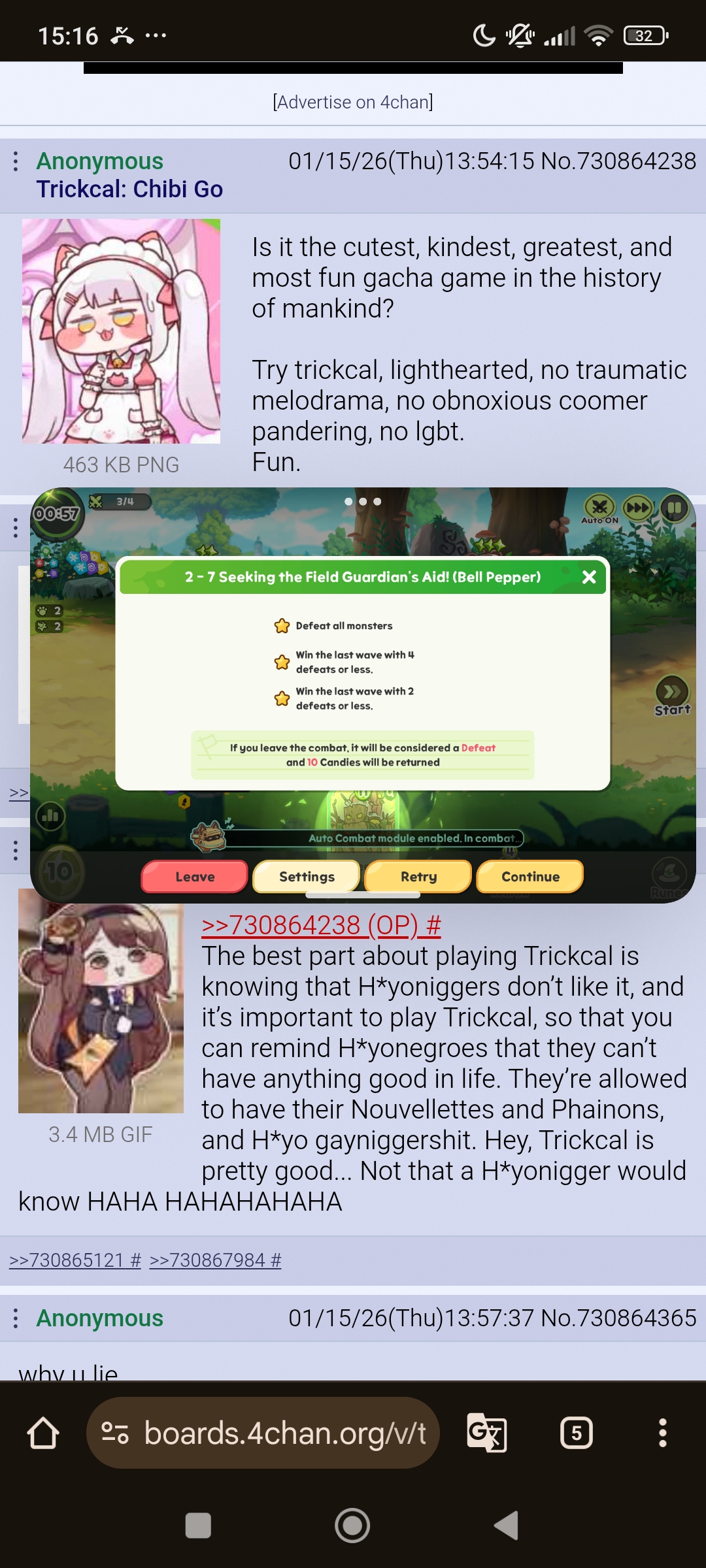 Is it the cutest, kindest, greatest, and most fun gacha game in the history of mankind? Try trickcal, lighthearted, no traumatic melodrama, no obnoxious coomer pandering, no lgbt.Fun.