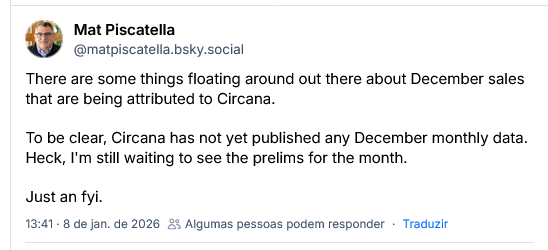 There’s no western data for December yet