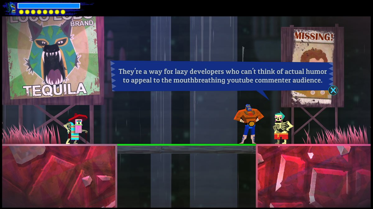 This is Guacamelee 2, devs were so asspained about the meanie weenie :( comments on the first game they had to create this whole area and segment just to hit back