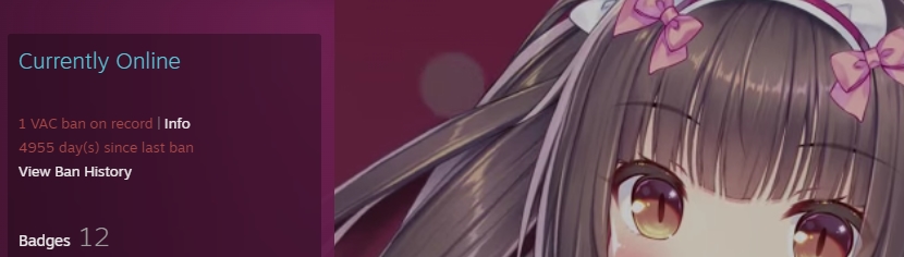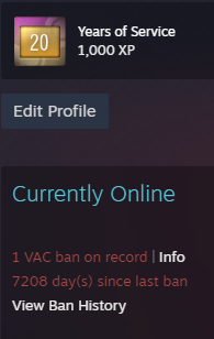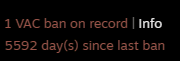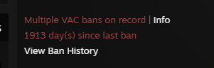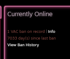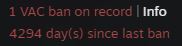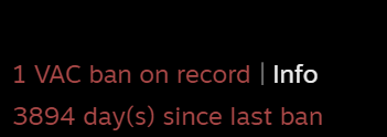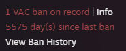 >1 VAC ban more than 15 years agoYeah, everyone did stupid shit as a kid.>Multiple VAC bans, or a single one from three to five years agoI’m judging the fuck out of you.