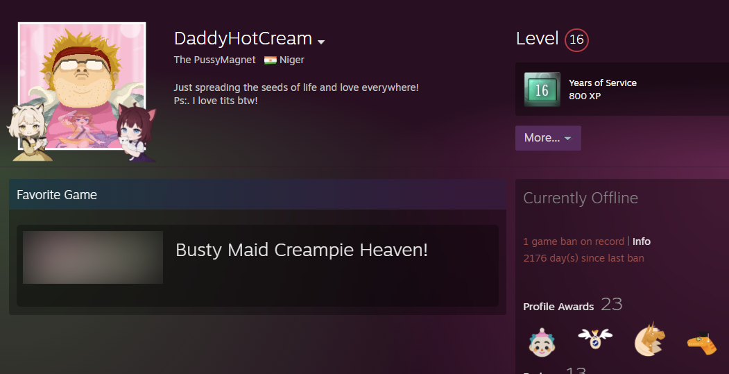 >18 year old account based in a third world shithole>multiple multiplayer games on record>zero VAC bans on record If people traded Steam profiles like they do knife skins my account would be worth a pretty penny