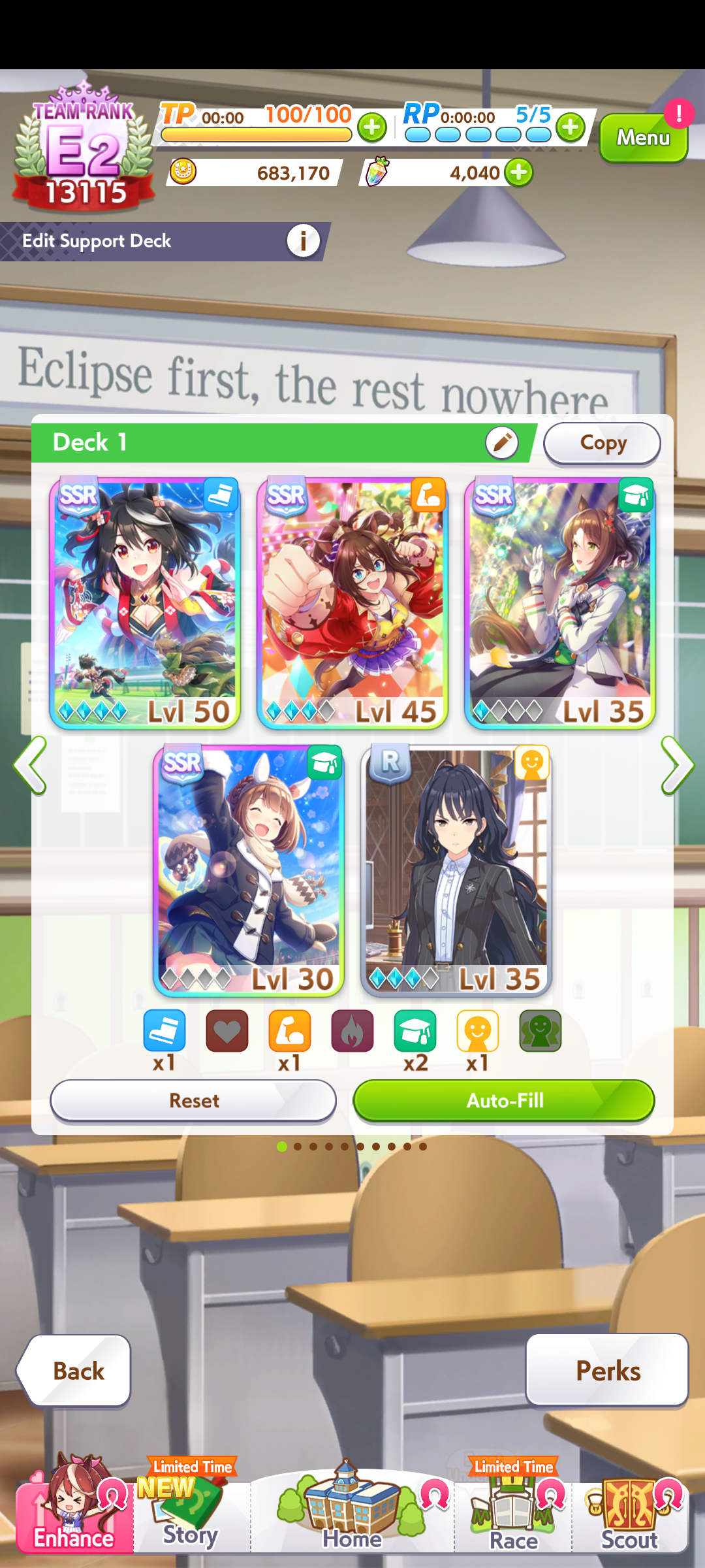 >>730895192When people say you want 5 copies of anything, they mean support cards, not the trainees
