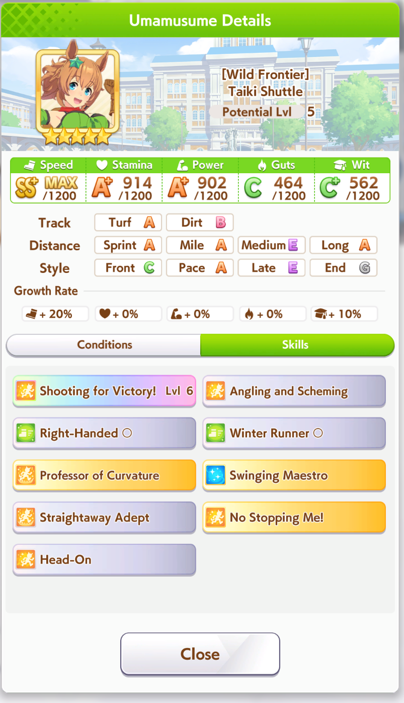 >>730908049from the rooms I've joined, Oguris have won a lot of them running as either pace or end, but pace more common. I'm still seeing lots of Golshis and Taishins win. This isn't really the ideal Xoguri track, but it's not the worst either. I'd put her at a strong #3, probably the best pace chaser you could run in tandem with your end closers or fronts, but by no means unbeatable here.