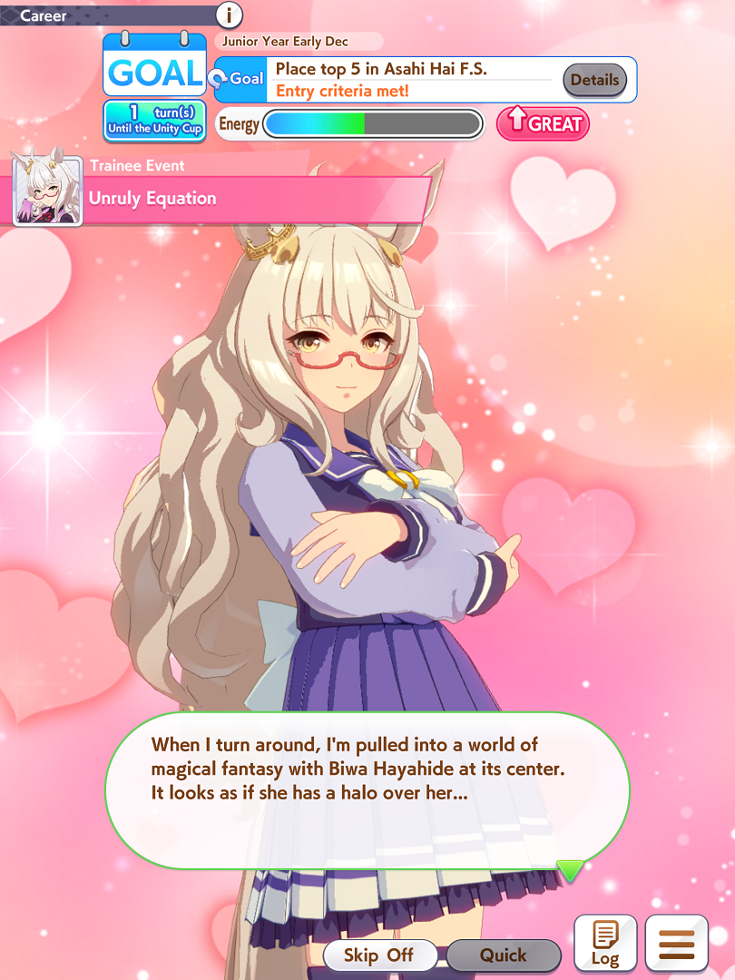 >>730906516>I was worried I got a dupe of some sortNotice the "NEW!!" next to her brahChristmas Oguri has a completely different moveset and unique special, but her career is mostly unchanged. That's how alts work. You don't get a whole new career, but your growth rates and abilities will change, sometimes in a huge way. Christmas Oguri is seen as one of the strongest trainees in the game now. Regular Oguri was already pretty strong in her own right. As someone who has neither, yeah you lucked out
