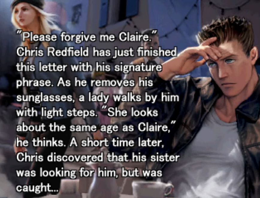 >>730902706>"Please forgive me Claire" is Chris' signature phraseWhat the fuck